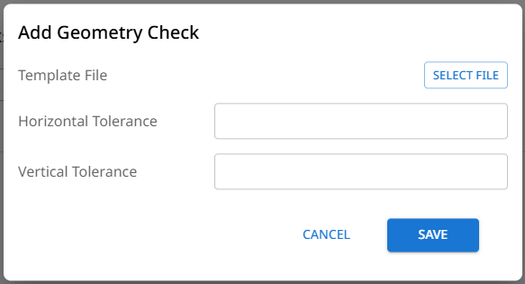 - Horizontal/Vertical Tolerances: Enter tolerance values in metres (m). These values will be taken into account during the geometry comparison process to determine whether model element geometry aligns with the template file geometry. Differences beyond the tolerance values will be classed as failures.