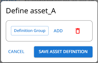 Click on the relevant 'Asset' button. This will open the 'Define asset' dialog window. This is where the specific conditions to be used to define which model elements will be identified as Class A, are defined.