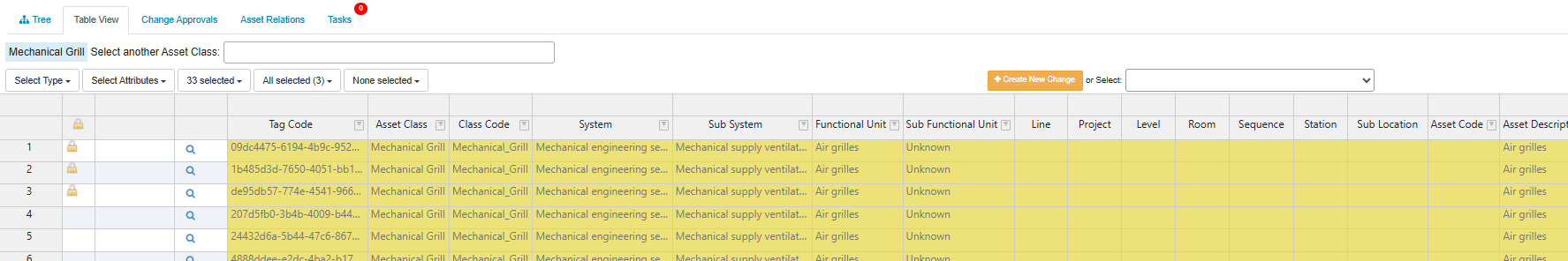From there, to view specific asset details, click upon the desired asset type within the tree and this will open the Smartgrid for that asset type, displaying all assets of that type along with their associate attribute details.