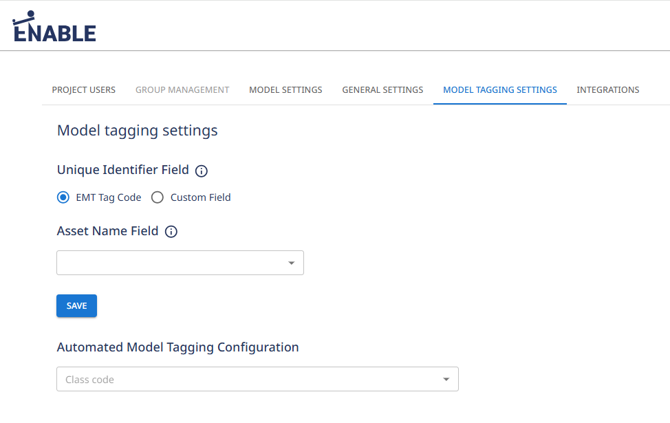 To enable the automated creation of assets based upon model element attribution, the Model Tagging Settings need configuring.