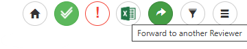 - Within the document view, in the top righthand corner, click on the green forward button 'Forward to another reviewer'