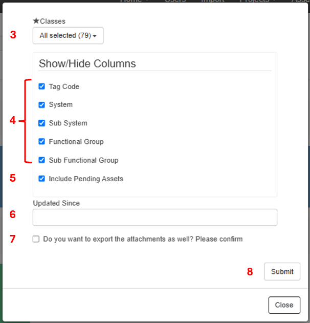 The export will include all assets for the selected classes, but only contain attributes for which data is present within the system.