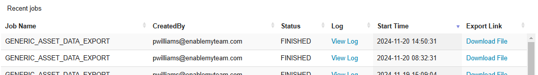 You will then be taken to the Exports log page which shows all the exports that you have run.
