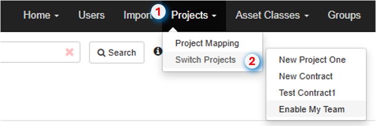 To switch between contracts, select Projects from along the top menu bar