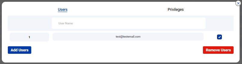 Add Users by clicking 'Add Users' and entering their email addresses within the user search field and then saving